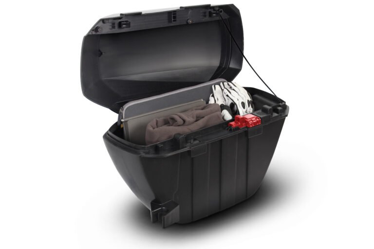 SH23 ALU LOOK yan çantalar, zarafeti, hafifliği ve işlevselliği ile öne çıkar. Mükemmel aerodinamik özelliklere sahiptir ve dayanıklılık ile su geçirmezlik sağlar. Üstten açılma özelliği, sürücünün motosikletten inmeden çantaya erişmesini mümkün kılar.